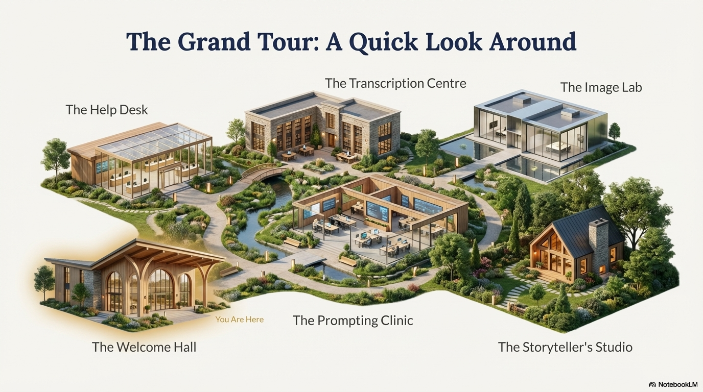 This self-paced campus is designed to give you practical, powerful AI skills you can use in your research today. No tech experience needed! Inside the Campus, You Will Discover How To: Decipher Impossible Handwriting in Seconds. In our Transcription Centre, you’ll turn that scribbled 19th-century will or faded census record into clean, searchable text. No more squinting required! Breathe New Life into Old Photos. Step into the Image Lab and magically erase cracks, sharpen blurry faces, and even colorize black-and-white photos with a single click. See your ancestors like never before. Turn Dry Facts into Unforgettable Stories. In the Storyteller’s Studio, you’ll learn the art of turning a list of names and dates into a compelling narrative that will captivate your entire family. Talk to AI Like an Expert. Our Prompting Clinic is the heart of the campus. We’ll teach you the simple method for writing prompts that get you exactly what you need, every single time. (And so much more!)
